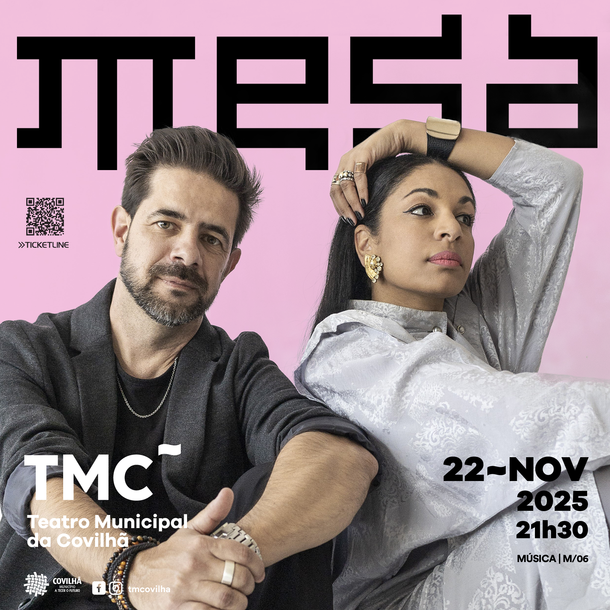 O TMC~ apresenta um concerto que marca o regresso aos palcos de uma das mais marcantes bandas do início do novo milénio: os MESA. A banda regressa em 2025 para uma tour muito especial e com a sua formação original, Mónica Ferraz e João Pedro Coimbra. Tendo como ponto de partida a revisitação do seu primeiro disco “Mesa” (2003), aclamado pelo público e pela imprensa, e que culminou em vários prémios incluindo “Disco do Ano” (Antena3) e “Melhor Banda ao Vivo” (Globos de Ouro SIC/Caras), a banda irá também passar pelos temas incontornáveis dos seus outros álbuns que marcaram uma geração: “Vitamina” (2005), “Para Todo o Mal” (2008) e “Automático” (2011). Após o êxito estrondoso da reedição do tema “Luz Vaga”, que contou com a participação especial de Rui Reininho - um single que perdura até aos dias de hoje - a banda correu o país em digressão tendo atuado nos maiores festivais como SBSR, Sudoeste, Rock in Rio, Vilar de Mouros, Noites Ritual, ou o Galp Energia (na mítica data de encerramento do Estádio José de Alvalade, ao lado de nomes como Caetano Veloso, Jorge Palma e Xutos & Pontapés). O sucesso dos Mesa não se limitou ao território nacional. O álbum que deu a conhecer a banda originária do Porto foi editado na Alemanha e foi amplamente referenciado pela crítica de outros países como Espanha, França ou Reino Unido. Destaca-se ainda a menção da revista americana Billboard como um dos “10 Melhores Álbuns Europeus do Ano”. Em 2025 lançaram uma nova versão do tema “Deixa Cair o Inverno”, canção que ladeia com temas “Luz Vaga”, “Vício de ti” e outros clássicos que não faltarão no concerto no TMC~.